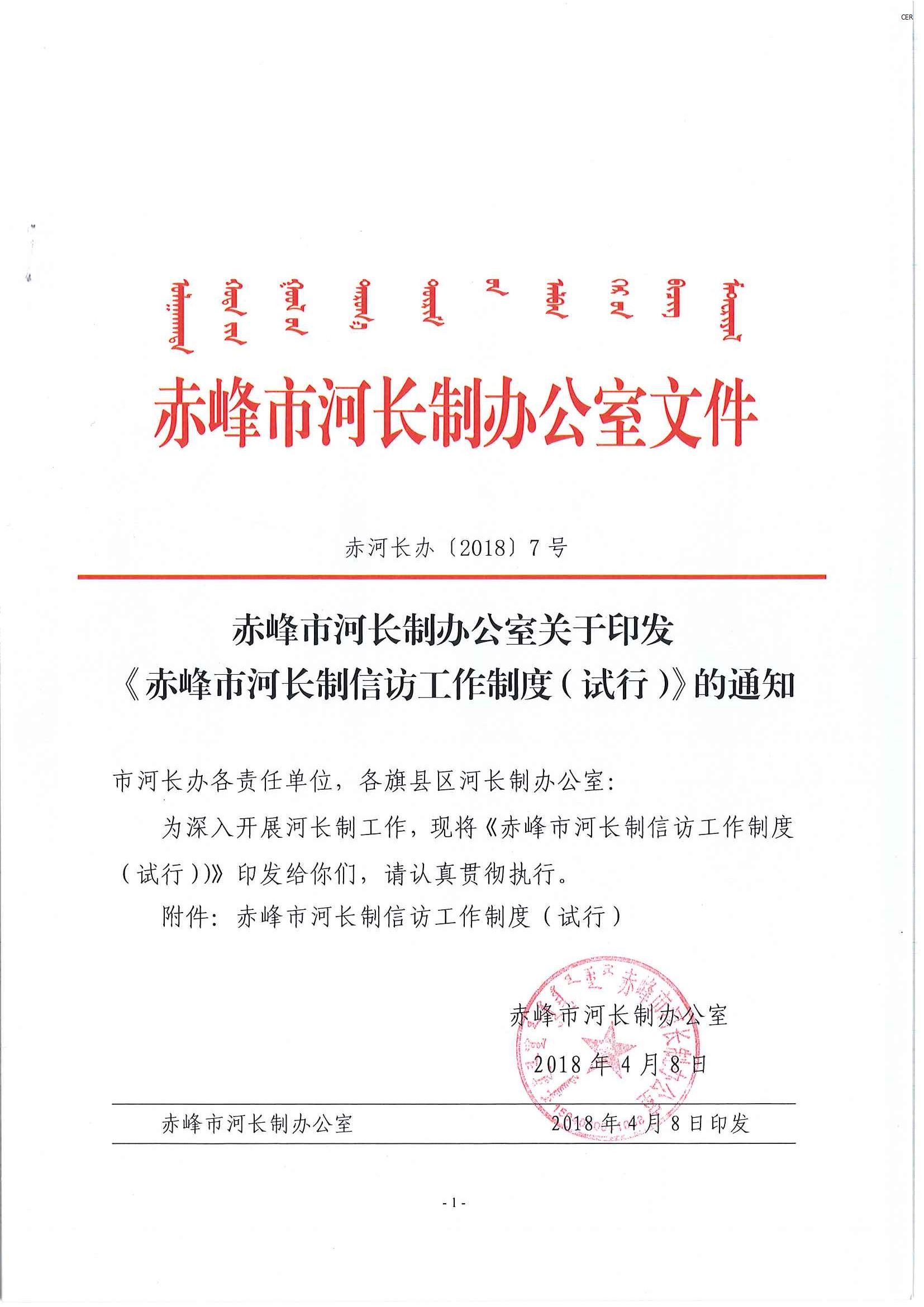 赤峰市河长制信访工作制度(试行)