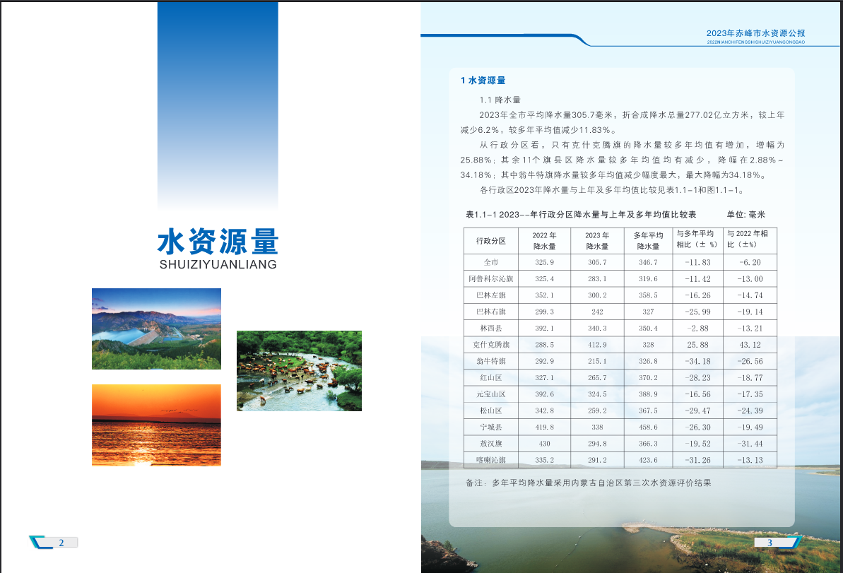 赤峰市2023年水资源公报